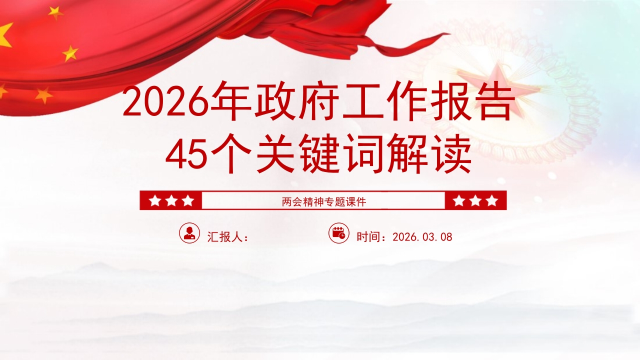 2026年政府工作报告45个关键词解读两会精神专题课件★★★汇报人:时间:2026.03.08