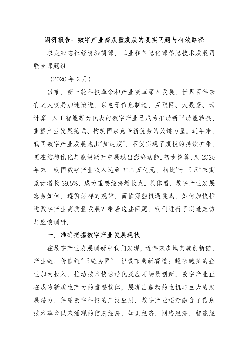 调研报告:数字产业高质量发展的现实问题与有效路径