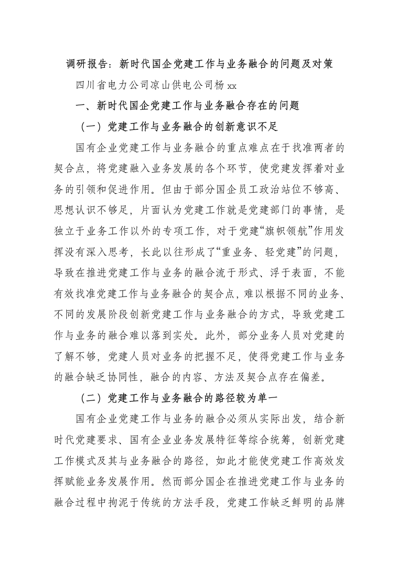 调研报告:新时代国企党建工作与业务融合的问题及对策