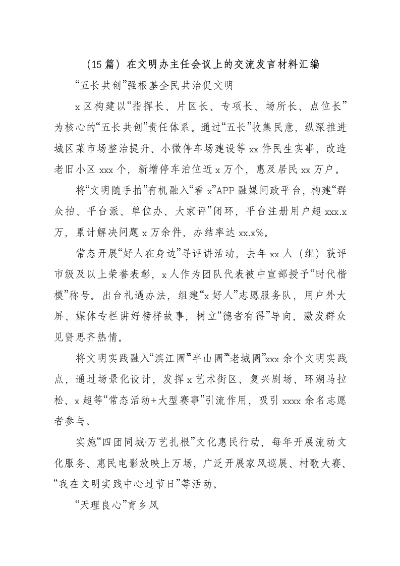 首页范文合集(15篇)在文明办主任会议上的交流发言材料汇编
