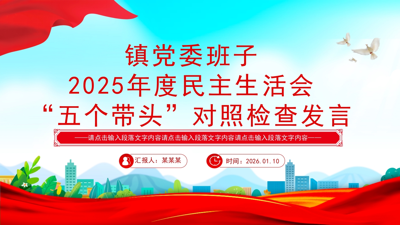 PPT:党委班子2025年度民主生活会“五个带头”对照检查发言PPT模板