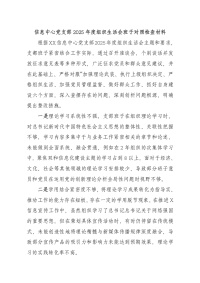 信息中心党支部2025年度组织生活会班子对照检查材料